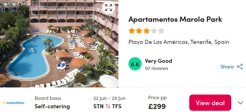 Take advantage of a fantastic opportunity for a 7‑night getaway to sunny Tenerife! Enjoy direct flights from Stansted and a stay at a comfortable 3‑star hotel in Playa de las Américas, all for just £299 per person based on two adults sharing. A similar price is also available for departures from Bournemouth. June dates available!
