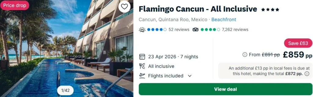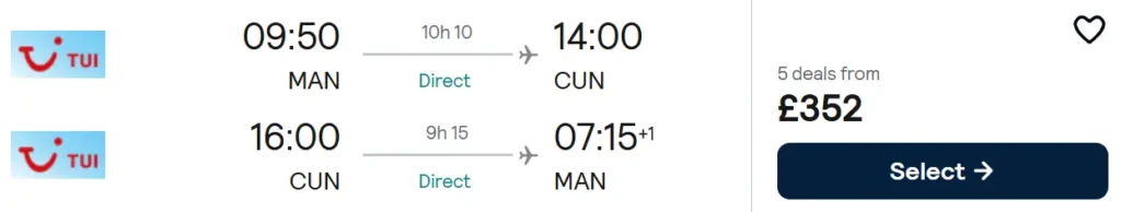 TUI is offering Manchester – Cancun, Mexico charter flights in late April and early May for £352 return.